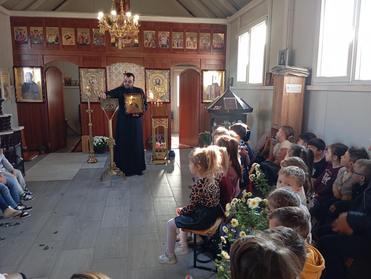 După ce ne-am familiarizat cu locul sacru în care ne-am aflat, le-am istorisit copiilor viața sfântului, apoi prin cuvinte cheie am căutat să repetăm aspecte pe care le-au reținut și care pot fi comparate, asimilate și în viața de zi cu zi.